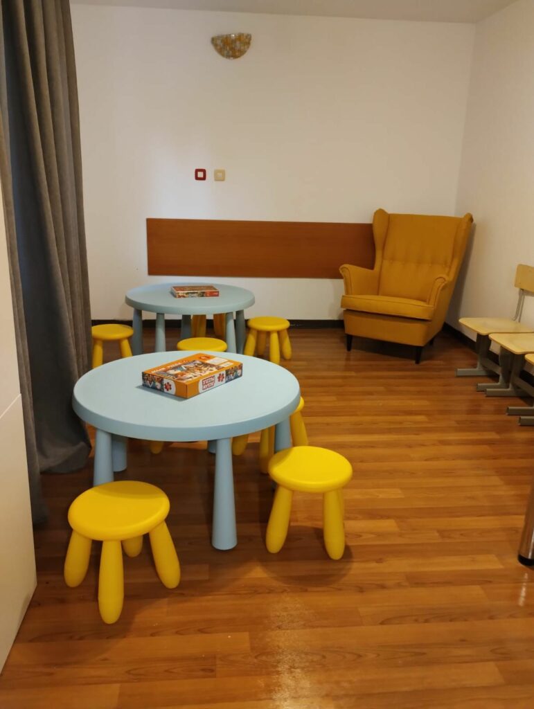 Spațiile destinate copiilor și adulților au fost dotate cu mobilier și echipamente necesare desfășurării activităților. Au fost achiziționate obiecte de mic inventar, mobilier pentru copii și adulți, precum și echipamente electrocasnice, contribuind la amenajarea unor spații funcționale și sigure pentru găzduire, consiliere și activități dedicate copiilor și mamelor.